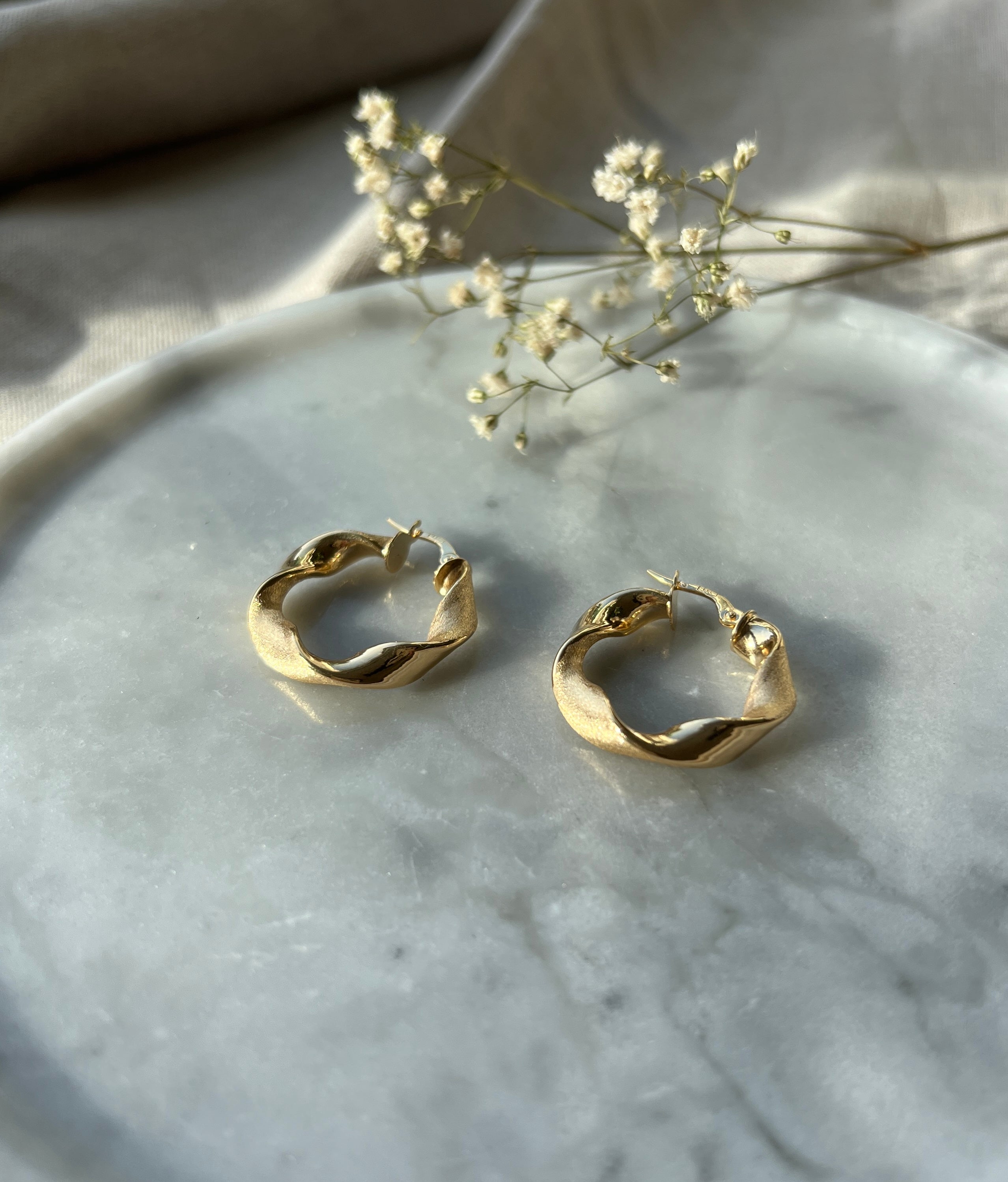14K Gold Creolen Luna mit Mattem und Glänzendem Twist